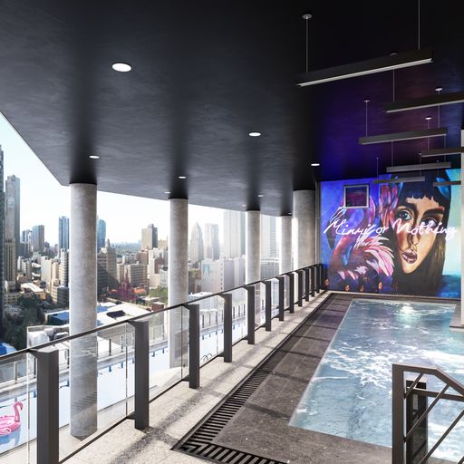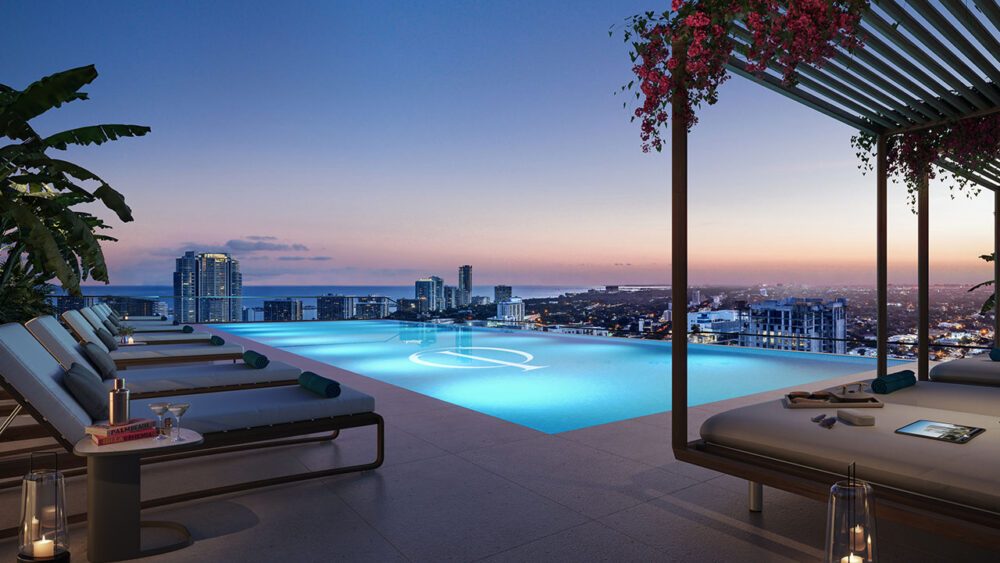 - Vibrante nivel de amenidades en la azotea que cuenta con una piscina infinita estilo resort con salas de estar privadas