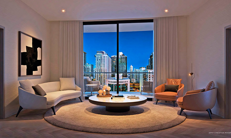 Ubicada en el corazón de Brickell Miami, esta torre residencial de 34 pisos, desarrollada por PMG, ofrece 240 residencias completamente amuebladas, que van desde estudios hasta apartamentos de tres dormitorios. Las suites de oficina dedicadas son un distintivo único de este proyecto, que abarca una amplia gama de planos de planta, desde 451 hasta 1,395 pies cuadrados.